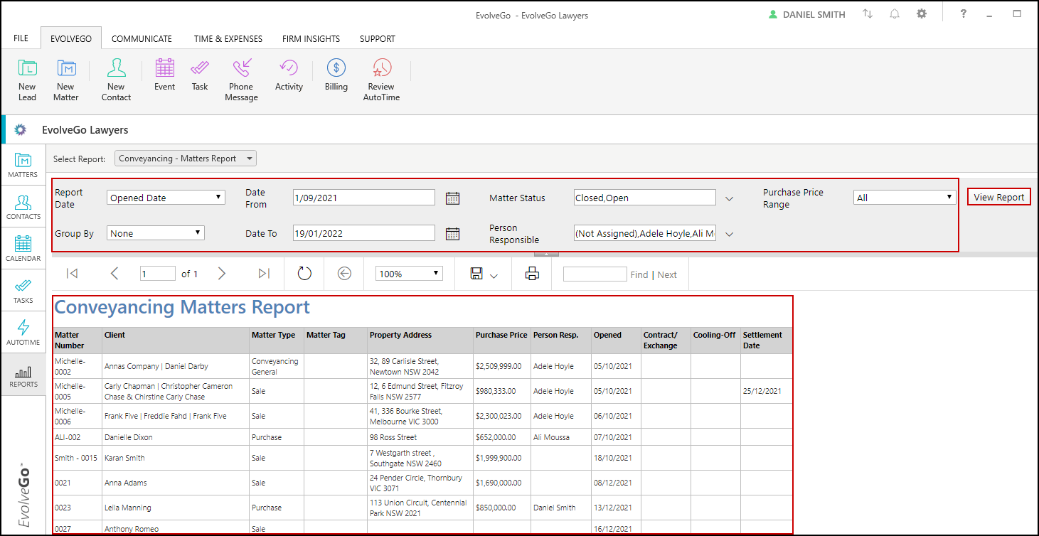 4. Click View Report and the report will generate on screen.