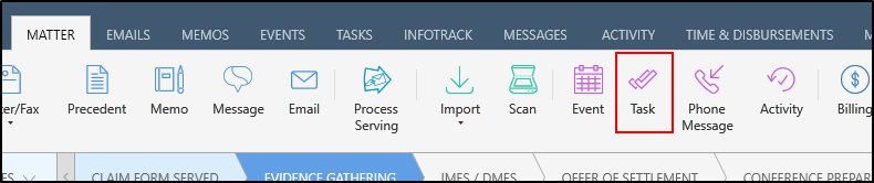 Tasks allow you to generate to-do lists to ensure you never miss an important step. Tasks can be assigned to specific staff members and given due dates, creating firmwide accountability. If you have a series of tasks that repeat over and over every time you open a matter or work on a specific type of matter, see Workflows for how you can make tasks even more powerful for your practice.