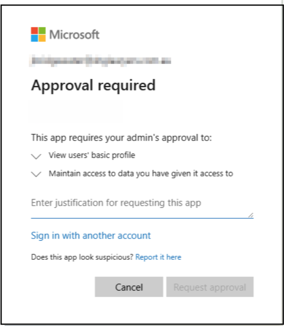 Your organisation may require admin approval. If you see an “Approval Required” message like the one below, contact your IT team.