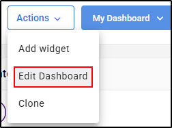To "Edit" the dashboard, click on "Actions" select ""Edit Dashboard" from the drop down menu.