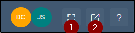 When initially opened, matter cards open in compact view, providing you a list of actions to take, and an overview of the matter, client and financial position. You can also open matters in full page mode either on the current browser tab (1), or on a new browser tab (2), by selecting the relevant button at the top of the matter card.