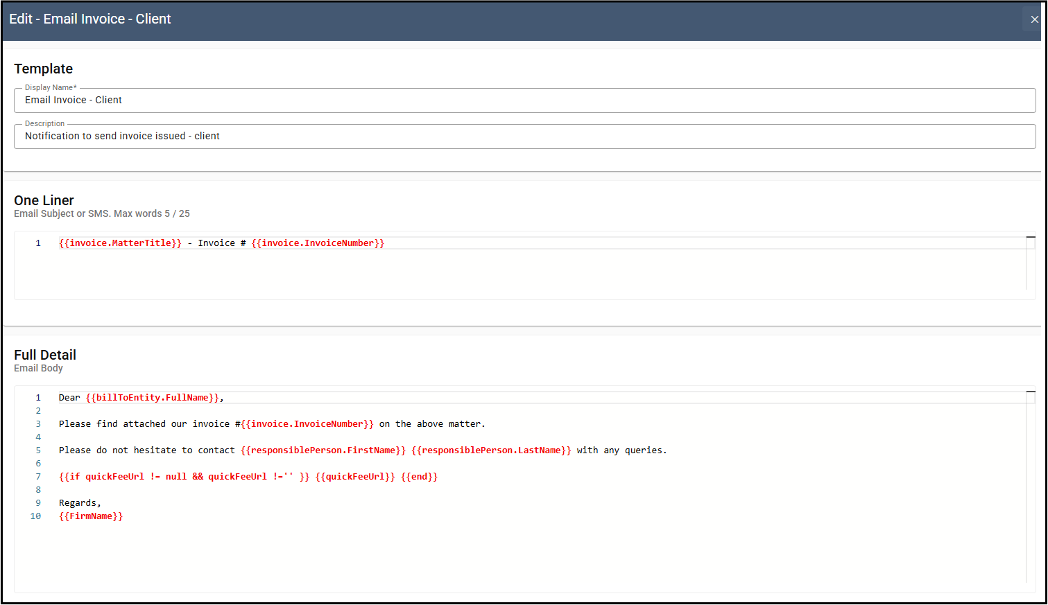| {{FirmContactNumber}} | Contact Number for the firm |