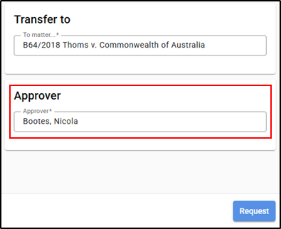 Note: Where a request for transfer has been made, the approver will be able to view the request, approve and complete the transfer.