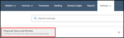 A new area for configuring the financial year has been added to Firm Settings. This is accessible only by users with Unrestricted Setting access.