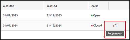 Once the financial year has been closed it will not be possible to reopen a financial period within that year, instead a post year end adjustment tool has been introduced to allow for any required adjustments (please see below for more detail).