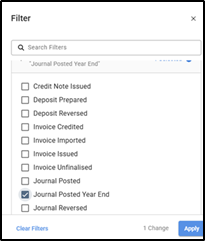 When reviewing the General Ledger, the automated clear down transactions have their own unique posting event type, which allows them to be filtered on, using the ‘Posting Events’ filter chip.
