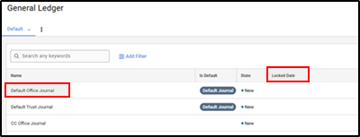 4. Select Save & view the entry in the ‘Locked Date’ column of the General Ledger screen (in 1.) .