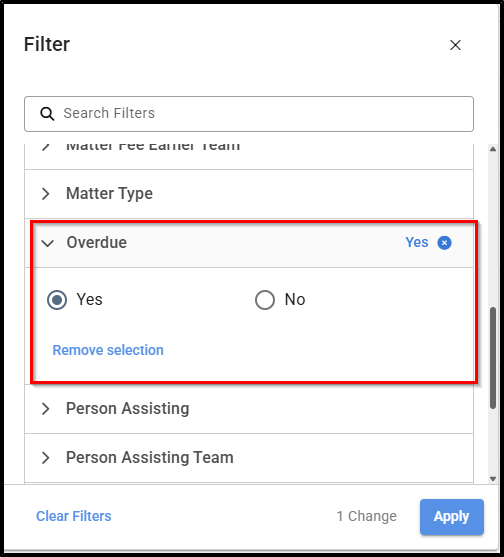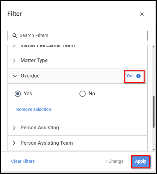 5. Where an 'X' does not appear, the field can be amended. Click into the filter name for further options.