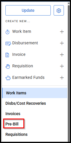 1. Navigate to a matter that you wish to generate a Pre Bill Report for. From the Matter Actions menu, select Pre-Bill
