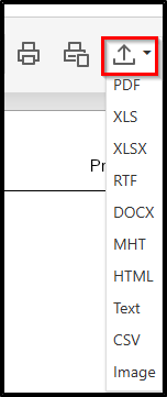 4. To save the report to your local computer, select the arrow symbol to the right of the print symbols. A number of formats are available.