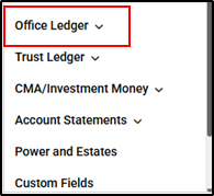 1. Navigate to the relevant matter, then select Office Ledger from the menu on the right hand side.