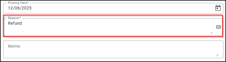 11. The Reason field will prepopulate with the invoice details, but can be amended.
