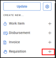 2. Select the + next to Requisitions on the Matter Actions menu on the right hand side.