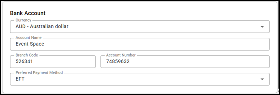 4. Update the Supplier's Bank Account Details, then select Save.