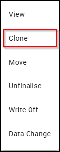 2. From Today's Work Items select the work item you would like to clone by selecting the ellipses button to the right of the relevant work item entry, then select 'Clone'.