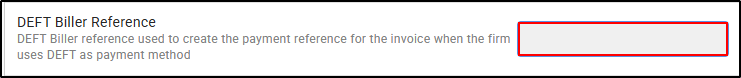 The key difference is that, when these documents are issued, the footer section will display the DEFT payment information—including the client’s unique DEFT reference number—instead of the firm’s standard payment details. This enables clients to transfer funds directly via DEFT.