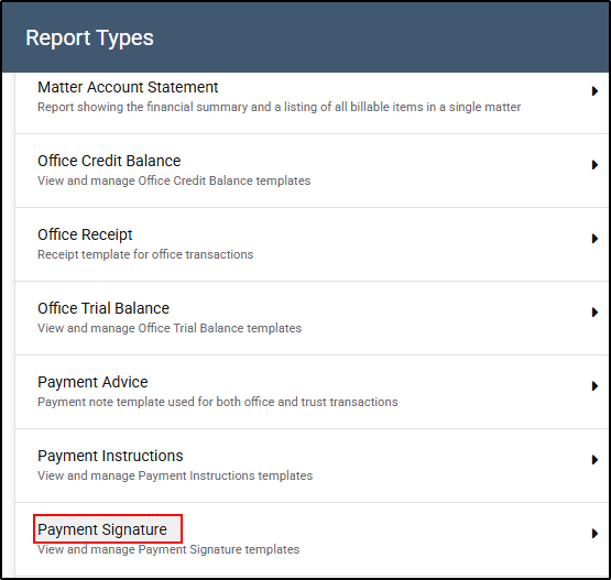 - From the drop-down menu, select Payment Signature.