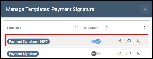 Mark DEFT Payment Signature Template as Default.
